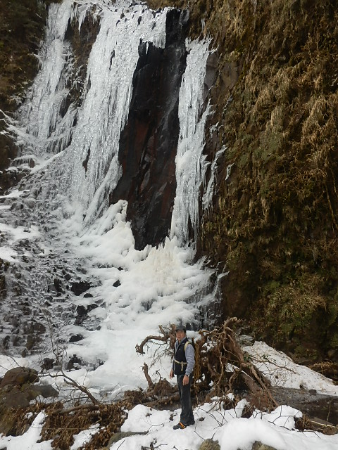 芭蕉の滝 氷爆 2013.2.1 2年前からの 希望 一昨年秋 下見でこの滝を見てから ぜひ冬の氷爆を見たく 機会を待っていました 2/1先週の 大雪あるが かなり冷えた日々 これなら いいかと 思い 出かけることにした持ち物は 安全を期して ア イゼン ロープ などを用意して 出発 猫越川のゲート ここに鍵があり 車はここでストップ 横の空き地に駐車して ゲートを越して出発9:30 林道をひたすら上る 途中分岐があるが舗装の方を優先して あるく 歩く 膝を痛めて1カ月養生したので ゆっくりと 歩く 途中から雪の影響が出てきており 上がるにつれて 多くなる10:49林道より 滝入口に到着 ここでアイゼンを付けて出発 やはり雪が多く 轍を利用し左は崖で かなりの注意が必要 あまりに 難しいと思い 中止しようと思うほどである 走行しながらゆっくりと歩いて11:28 1年半ぶりに 到着 見事な氷爆 感動して パチリ 全面凍結 氷の下を水が流れ 滝壺から 50mくらい川が凍結 見事 また積雪も30cm程度 しかし寒く お天気が曇りから 雨とのこと 早々に 来た道を注意しながら もどる 12:06滝入口分岐へ さらに林道を 下山 登山口 猫越橋へ到着13:12でした 9:30右側 袂に駐車 9:35砂利道を登る 9:56分岐右側へ 10:17雪堂 10:38尚も雪道 10:49滝入口通行止め看板あり 11:04滝への取付道 11:25危険な道 11:28氷爆が見えた 11:32到着全面氷爆 滝からの河原も氷爆 11:39下山開始 11:51帰り道 11:54危険な道 危険50mくらい落ちるよ 12:06入口到着 林道と滝への分岐 13:12猫越橋下山 芭蕉の滝 毎年2月の初めころ 見所時期で 雪があり 特に滝への道は 荒れていて危険であり ロープは気休めにあるので 気をつけること 簡易アイゼンがあればいい また 午前中に 滝に行きたいものである 氷爆が 落下の可能性あり また 道の雪が緩むので 早目が いい 花田舎hanainaka 410-2416 伊豆市修善寺1253-2 tel.fax 0558-73-1187 ken Copyright (C) hanainaka. All Rights Reserved. |